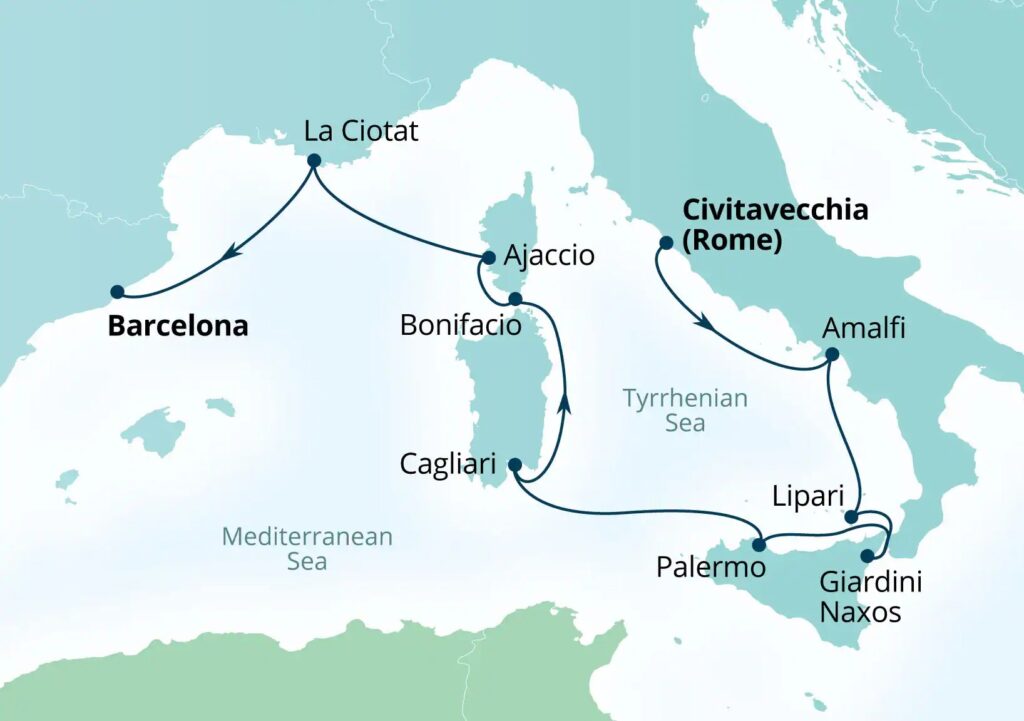 Conclude your voyage in the vibrant city of Barcelona.