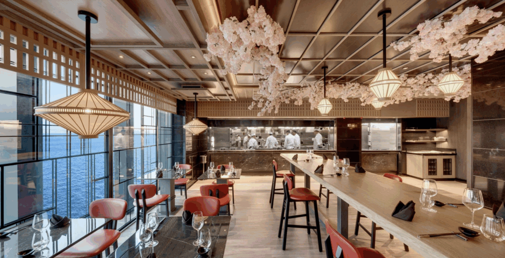 Sophisticated, varied culinary experiences - 5 restaurants onboard, 24/7 in-suite dining, and other areas to enjoy quick bites or ice cream