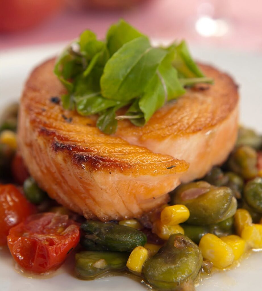 Los principios de la granja a la mesa guían el desarrollo del menú a lo largo del año. La carne de vacuno, cordero y marisco chilenos de origen sostenible son un lugar destacado. Además, las hierbas y verduras frescas complementan perfectamente cada plato.