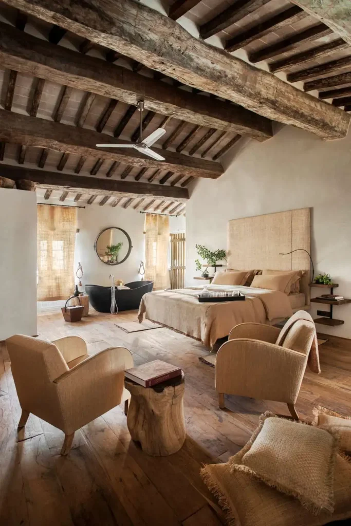 La propiedad cuenta con alojamientos cuidadosamente diseñados a lo largo de colinas esmeralda y campos dorados. Además, cada sala exhibe materiales auténticos como paredes de yeso cálido y vigas de madera expuestas. Además, la ropa de cama artesanal y las vistas panorámicas crean conexiones íntimas con el paisaje circundante.