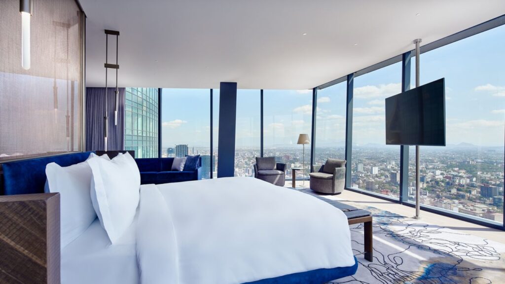 Situado sobre las bulliciosas calles de Ciudad de México , el Ritz-Carlton encarna el lujo. Situado en el Paseo de la Reforma y el Bosque de Chapultepec, este hotel ofrece mucho más que una estancia: es toda una experiencia. Además, abarcando las plantas 37 a 47 de una torre de 59 plantas, el Ritz-Carlton Ciudad de México redefine el capricho para los viajeros exigentes. A los huéspedes esperan vistas impresionantes, servicios de clase mundial y una fusión perfecta de la cultura local con la opulencia moderna.