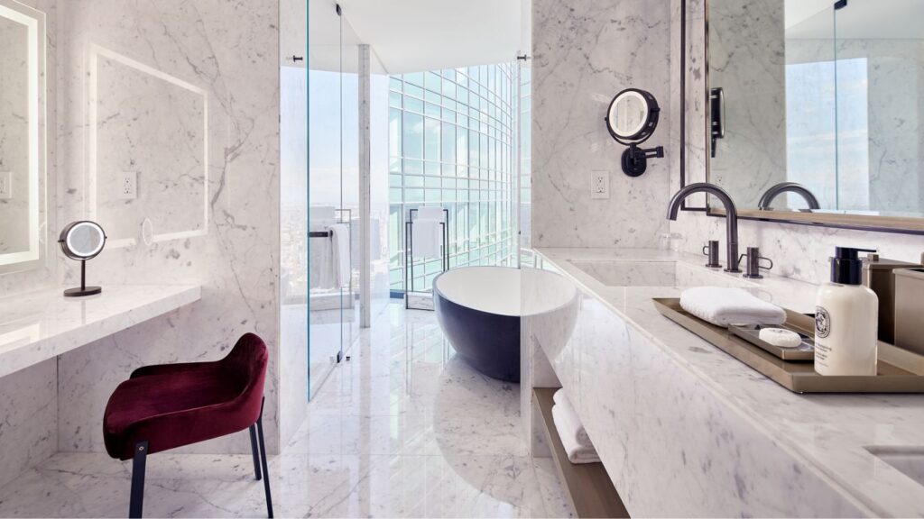 Sobre el bullicioso centro de la ciudad, las habitaciones y suites del Ritz-Carlton ofrecen una escapada serena. Situados entre las plantas 37 y 47, estos alojamientos incluyen: