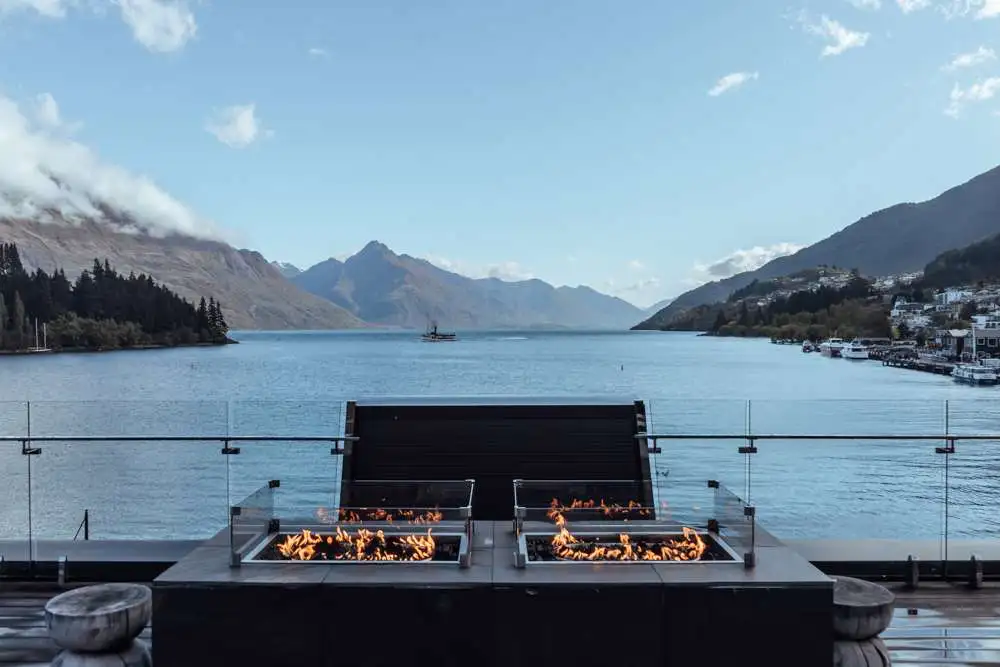 Chaque suite offre une vue panoramique sur le lac Wakatipu, avec des lits super-king, des cheminées au gaz et de vastes salles de bains en marbre. Chaque détail est conçu pour la détente et l’indulgence.