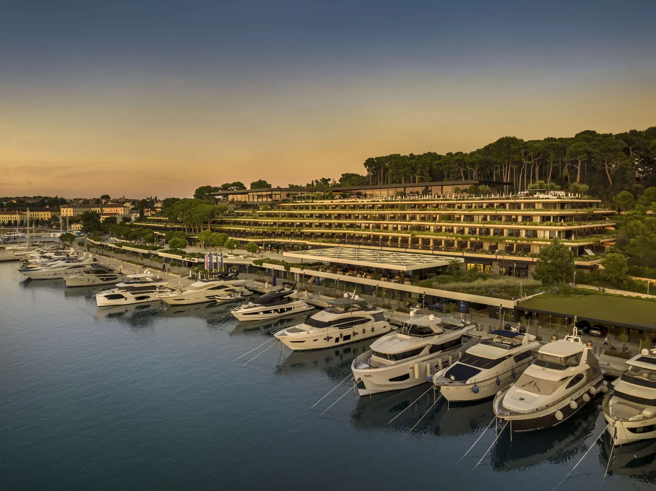 Avec son design moderne mais harmonieux du célèbre architecte italien Piero Lissoni, le Grand Park Hotel Croatia s’intègre parfaitement au parc forestier environnant du Golden Cape. Chacune des 209 chambres et suites propose une terrasse privée, certaines même avec piscines, vous permettant de vous détendre tout en profitant de la vue sur l’Adriatique, la verdure luxuriante et le port vibrant de Rovinj.