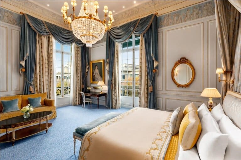 Shangri-la offers 100 luxurious rooms and suites, each uniquely crafted in a distinctive French-Asian style with a soothing Rococo color palette and plenty of natural light. Many rooms boast breathtaking views of the Eiffel Tower or Avenue d’Iéna and can be interconnected to accommodate larger families or groups. Each space is meticulously designed to provide the utmost comfort and luxury. The elegant décor, plush furnishings, and state-of-the-art amenities ensure an exceptional stay, where every detail is crafted to perfection. The hotel features rooms, suites, and signature suites, including The Prince Bonaparte Apartment, a one-bedroom suite that blends 18th-century French. It is situated in a historic building overlooking Avenue d’Iéna and the Guimet Museum, adorned with authentic moldings, Versailles-style parquet floors, and a luxurious room in blue and gold tones.