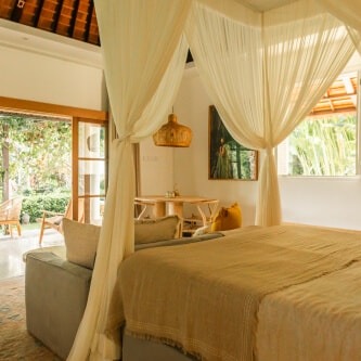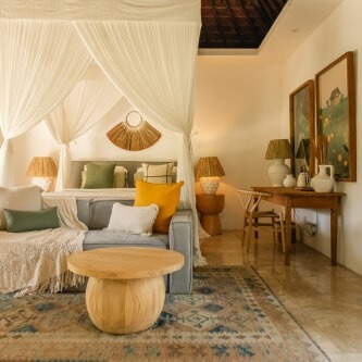 Each villa at Sukhavati is a harmonious blend of traditional Balinese architecture and contemporary luxury. Designed to provide a serene and private haven, the villas feature spacious interiors adorned with handcrafted furnishings, open-air bathrooms, and private terraces overlooking lush gardens or the tranquil river. Modern amenities ensure utmost comfort, while thoughtful touches reflect the retreat’s commitment to sustainability and harmony with nature. The seamless integration of indoor and outdoor spaces allows guests to fully immerse themselves in the natural beauty that surrounds them, fostering a deep sense of relaxation and rejuvenation.