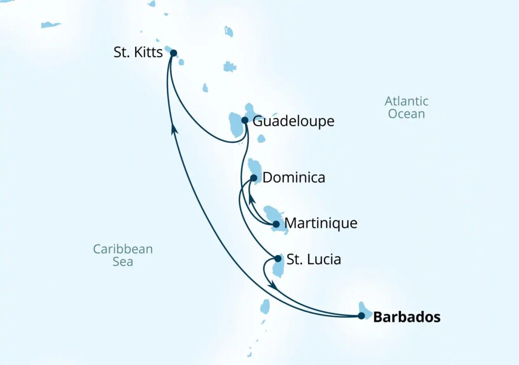 Bridgetown | Carambola Beach | Pointe-à-Pitre | Trois Ilets | Roseau | Rodney Bay
