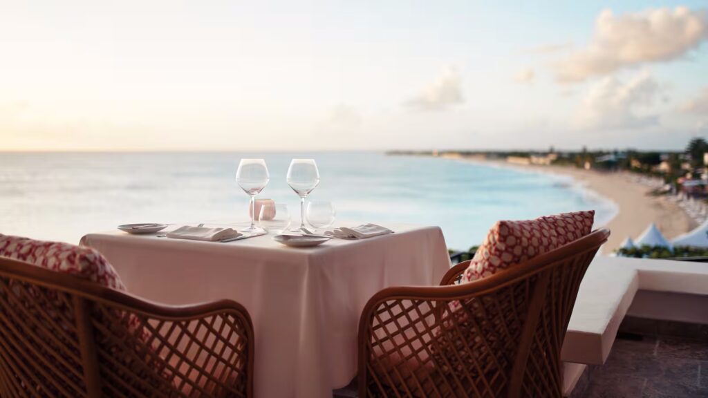 Além disso, os ambientes ao ar livre — aprimorados pela iluminação ambiente e vistas panorâmicas do oceano — criam experiências gastronômicas incomparáveis no Caribe.