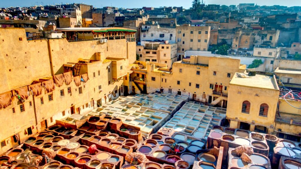 Os artigos de couro do Marrocos estão entre os mais procurados do mundo. Graças aos métodos tradicionais de curtido, o couro é macio como manteiga, mas incrivelmente durável. Um dos destaques de um passeio em Fez envolve visitar suas coloridas curtumes. Embora o cheiro forte possa ser memorável, o trabalho artesanal é realmente inesquecível.