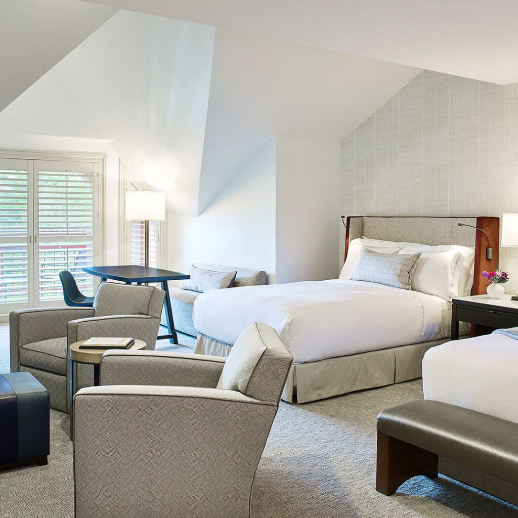 Além de sua localização ideal, as acomodações do The Little Nell são incomparáveis. Cada quarto de hóspedes, suíte e residência oferece um estilo cosmopolita , com uma referência à estética montanhosa relaxada de Aspen. Pense em móveis modernos, roupas de cama macias e janelas do chão ao teto que emolduram vistas impressionantes das Montanhas Rochosas.