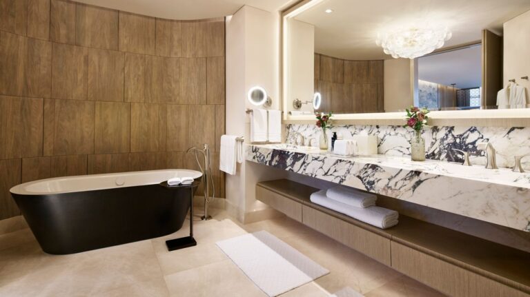 Cada quarto e suíte do The St. Regis na Cidade do México é um refúgio de elegância, com janelas do chão ao teto e vistas panorâmicas do horizonte da cidade. Projetado com móveis contemporâneos e roupas de cama macias, cada espaço proporciona uma atmosfera de conforto e exclusividade. Banheiros espaçosos de mármore, tecnologia de ponta e detalhes personalizados elevam a experiência do hóspede a novos níveis de luxo.